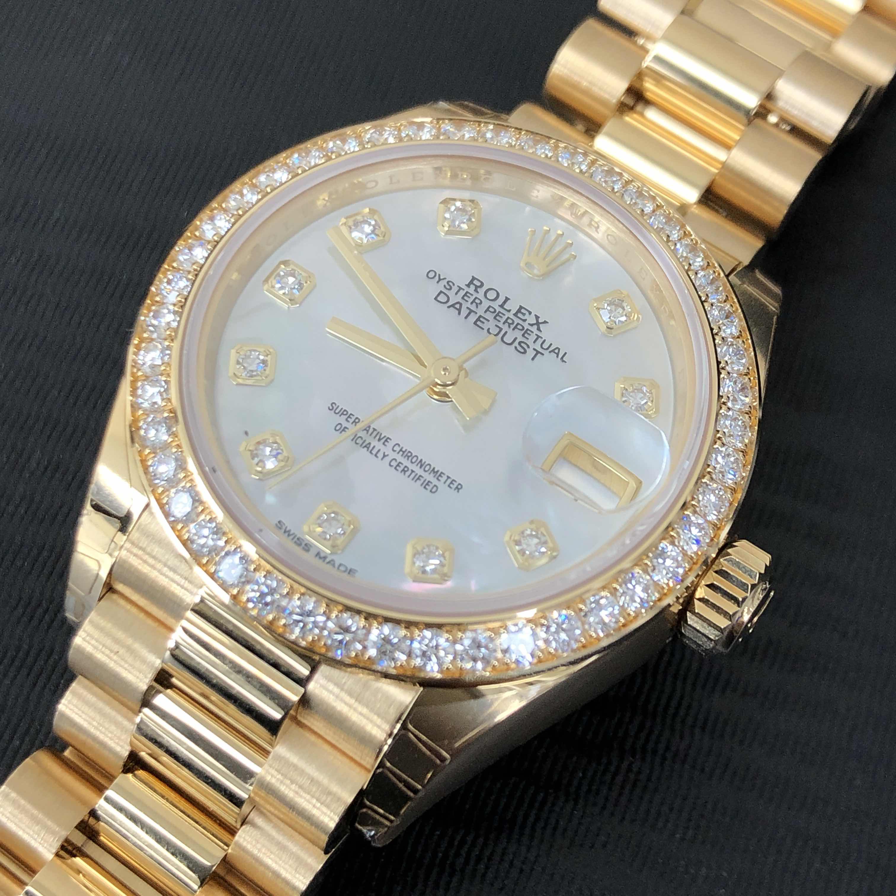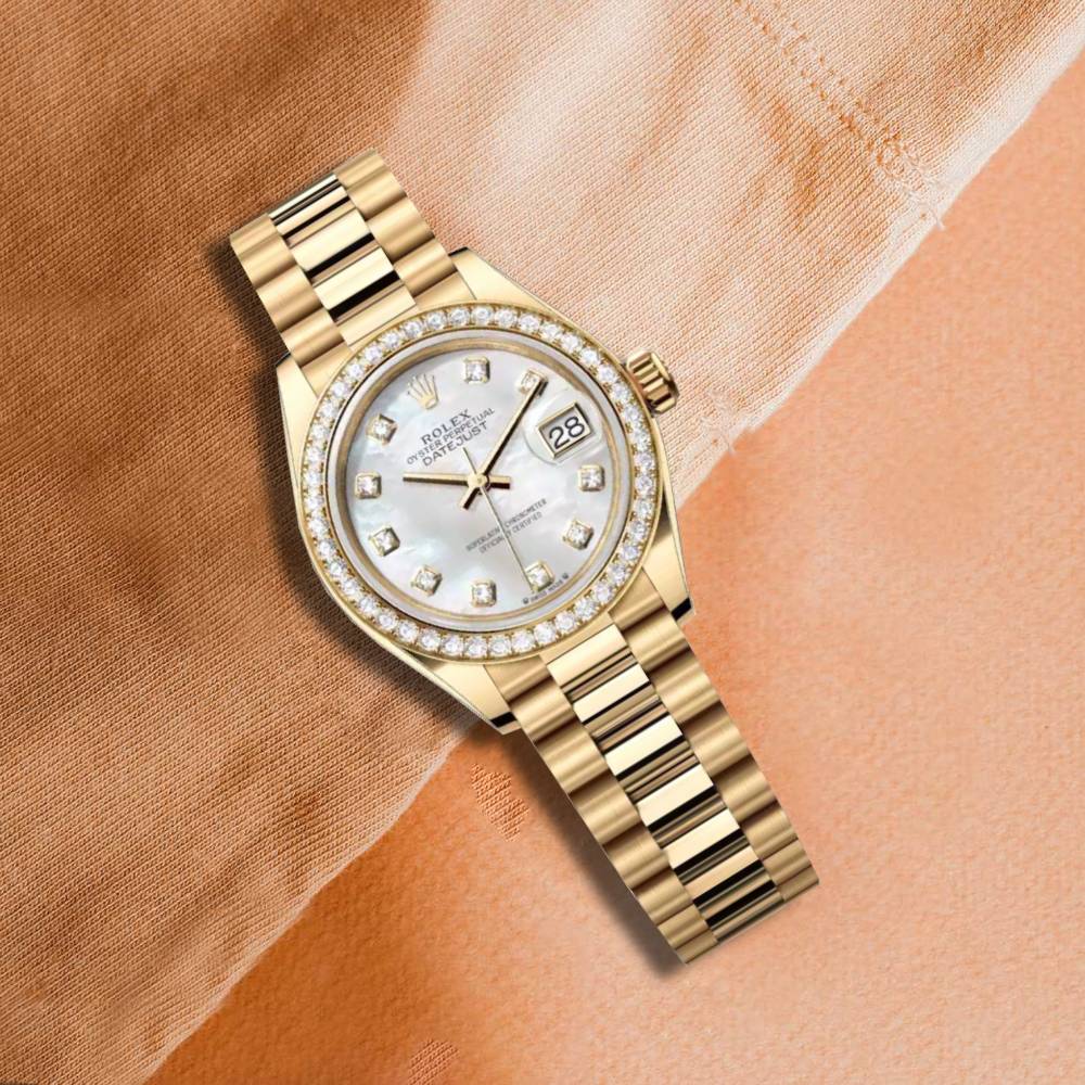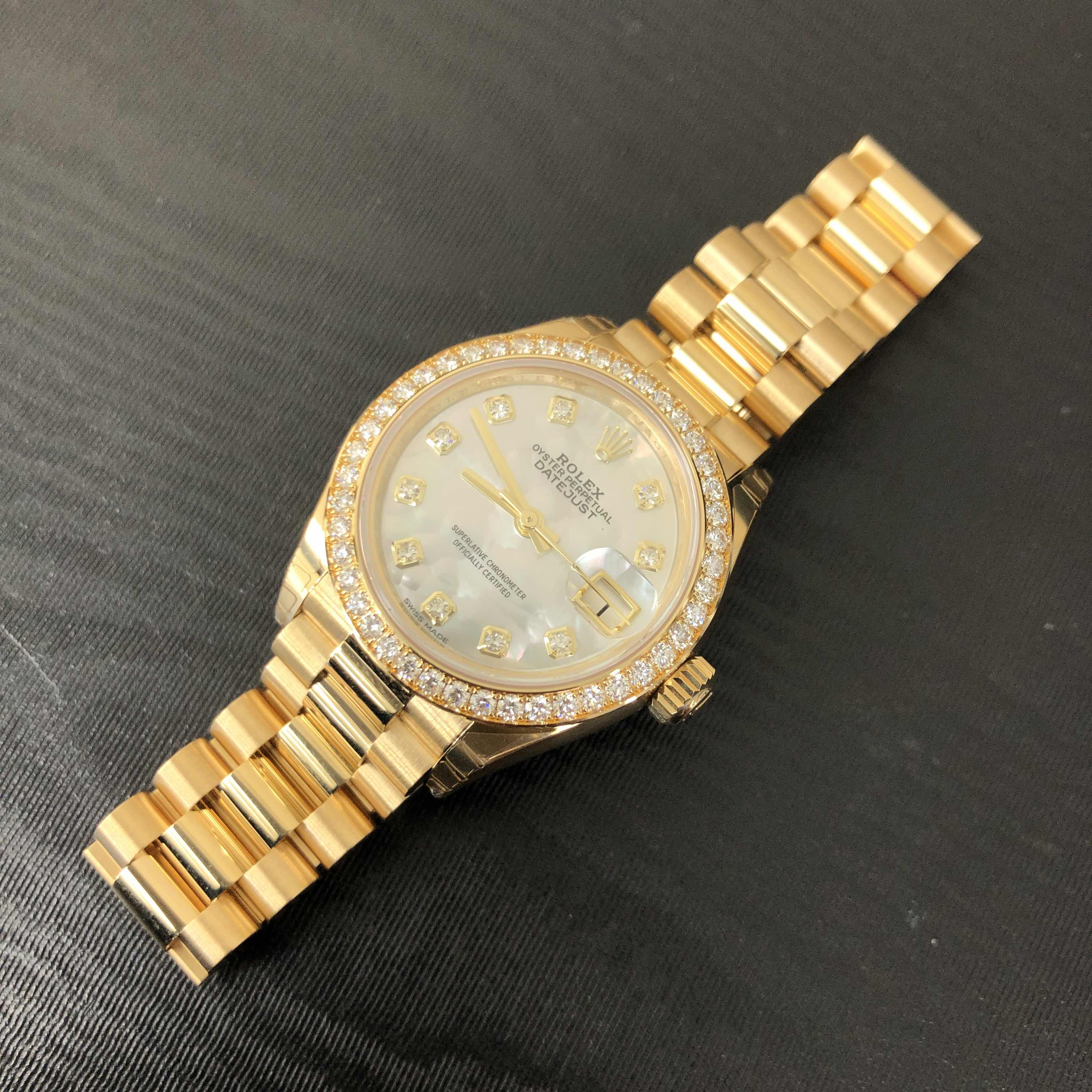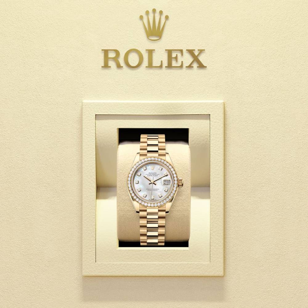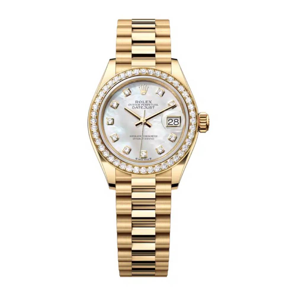 Lady Datejust 28mm - Ref: 279138rbr-0015 - White Mother of Pearl Dial, 18K Yellow Gold President Bracelet Women's Watch Ladies/Women's watches Women's rolex