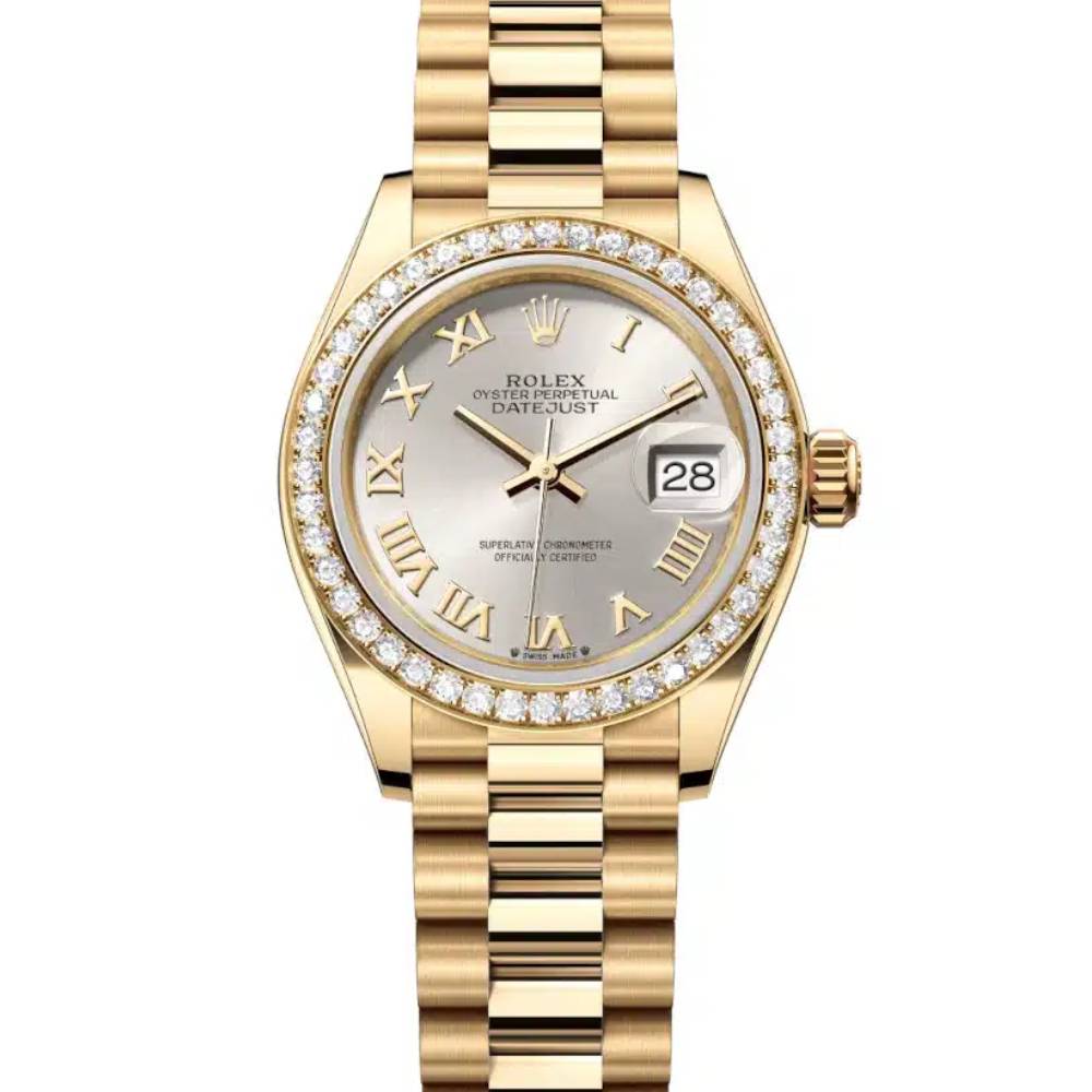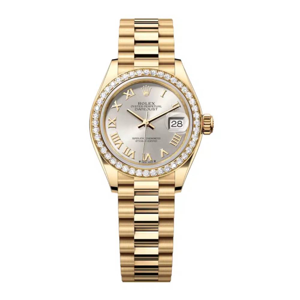 Lady Datejust 28mm - Ref: 279138rbr-0017 - Silver Dial, 18K Yellow Gold President Bracelet Women's Watch Ladies/Women's watches Women's rolex
